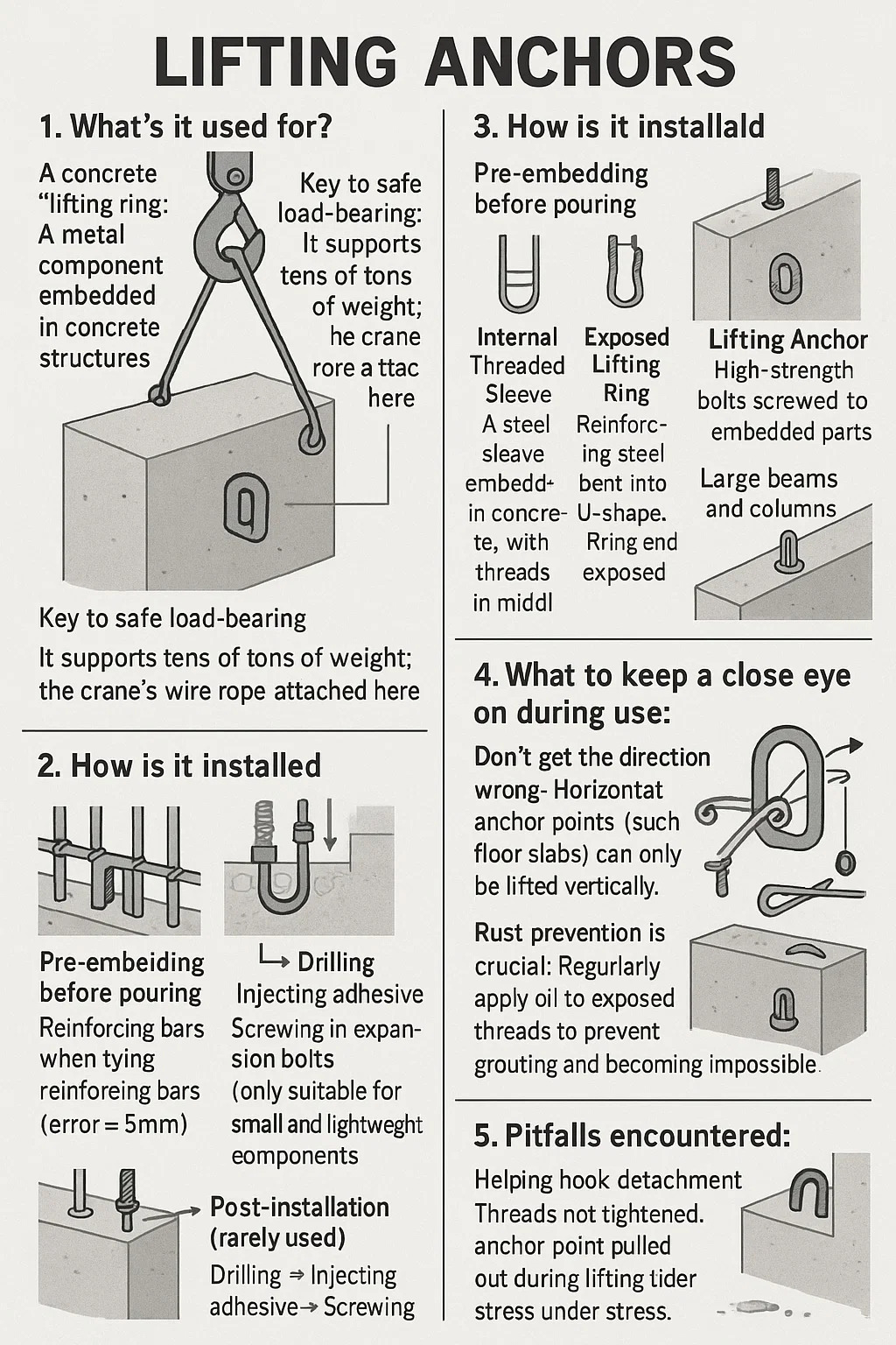 Tässä on selitys nostoankkureita , jaettuna yleisiin rakennustyömaatermeihin: